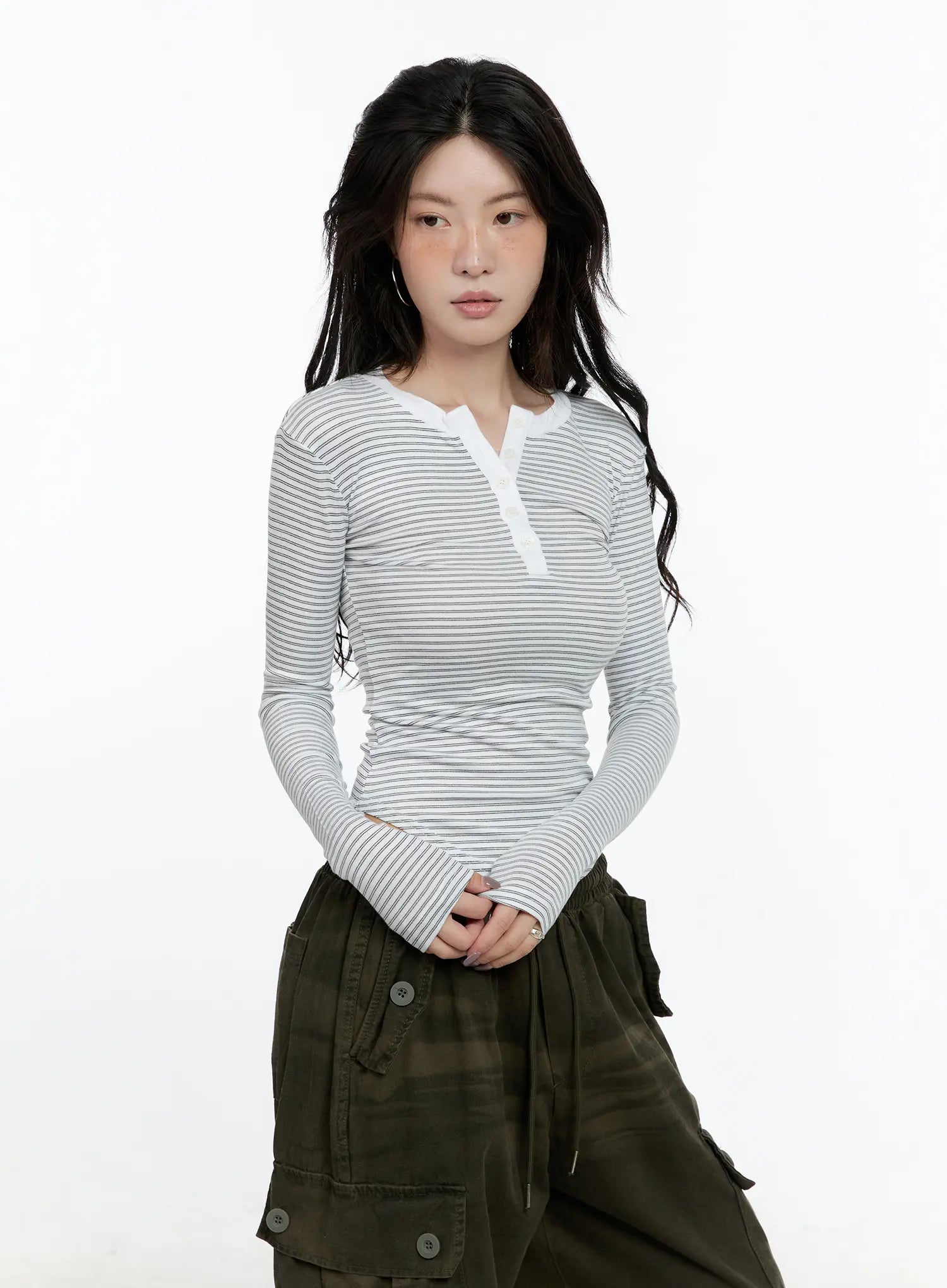 Striped Button Slim Fit Tee CN517