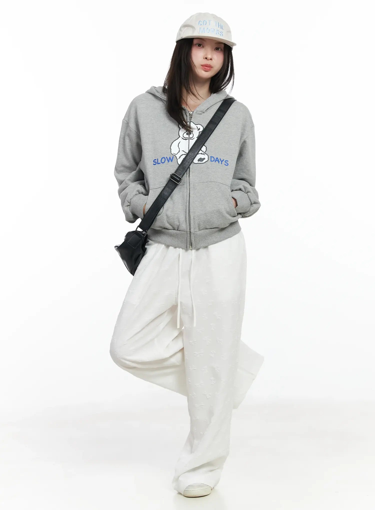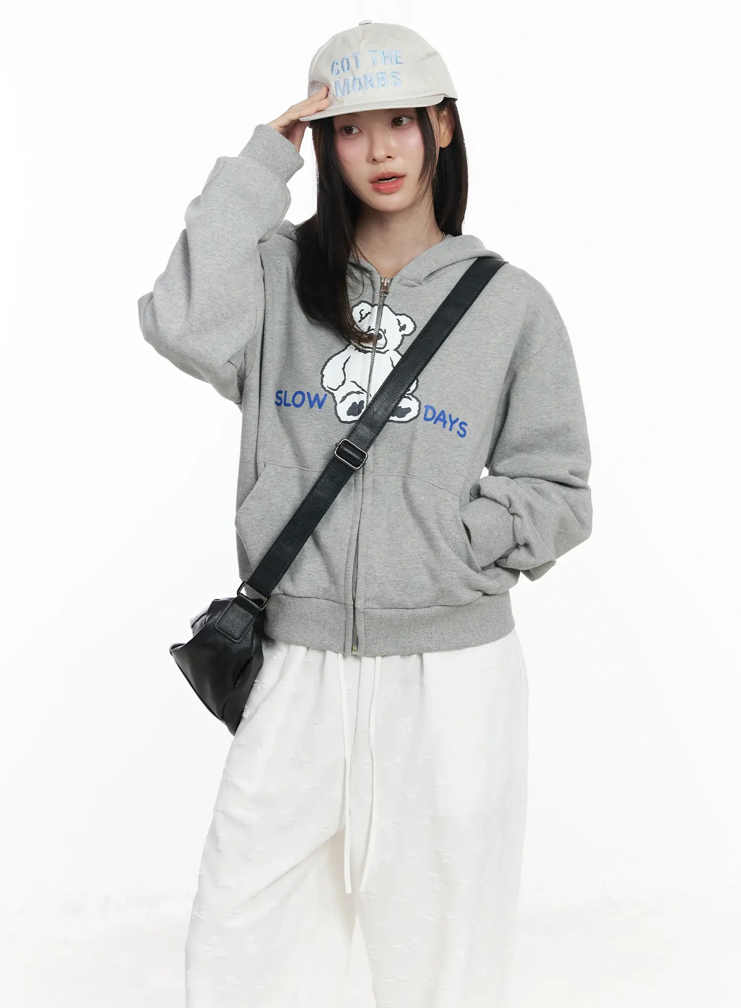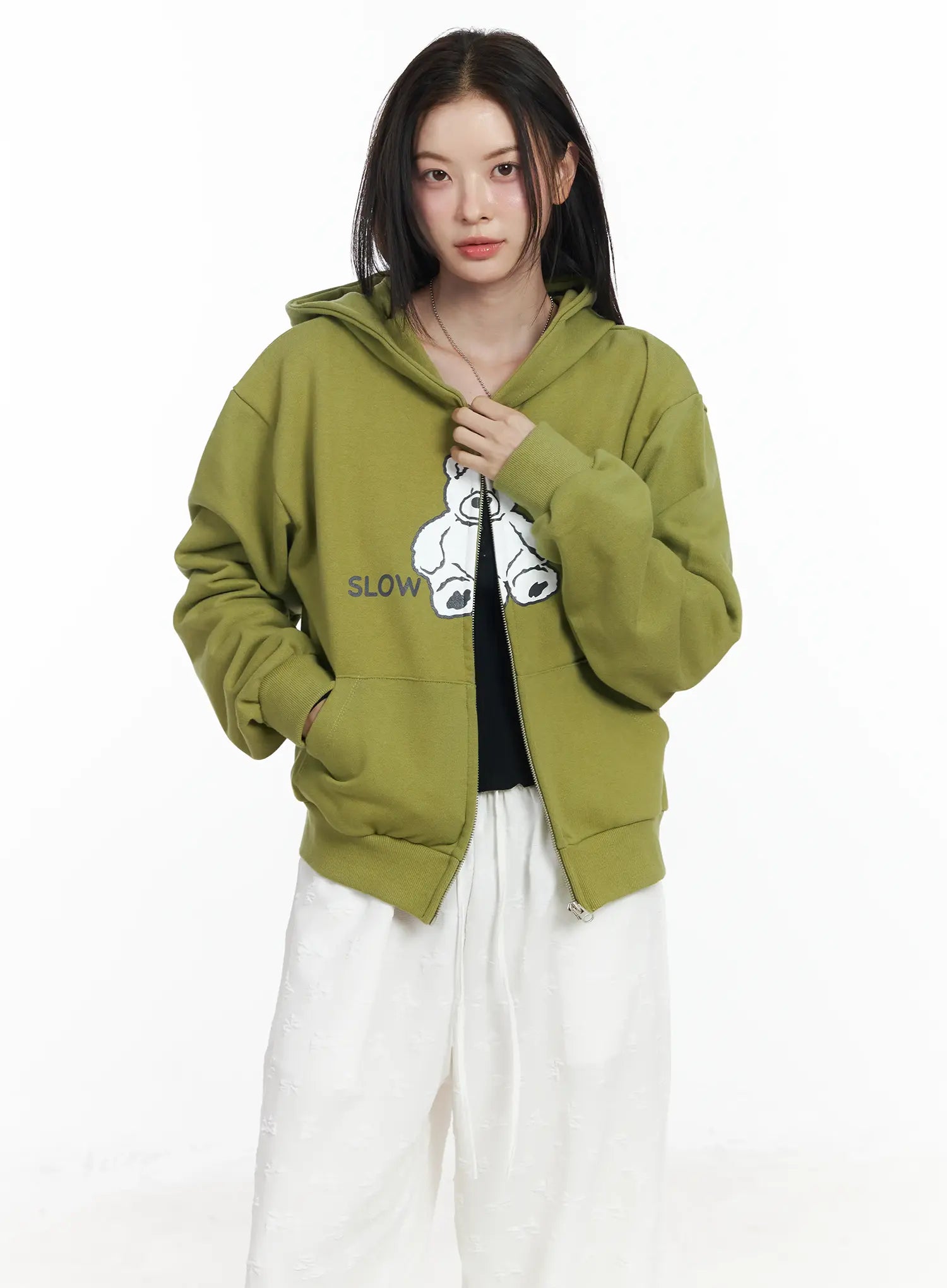 Teddy Bear Graphic Two-Way Zip-Up Hoodie IF525