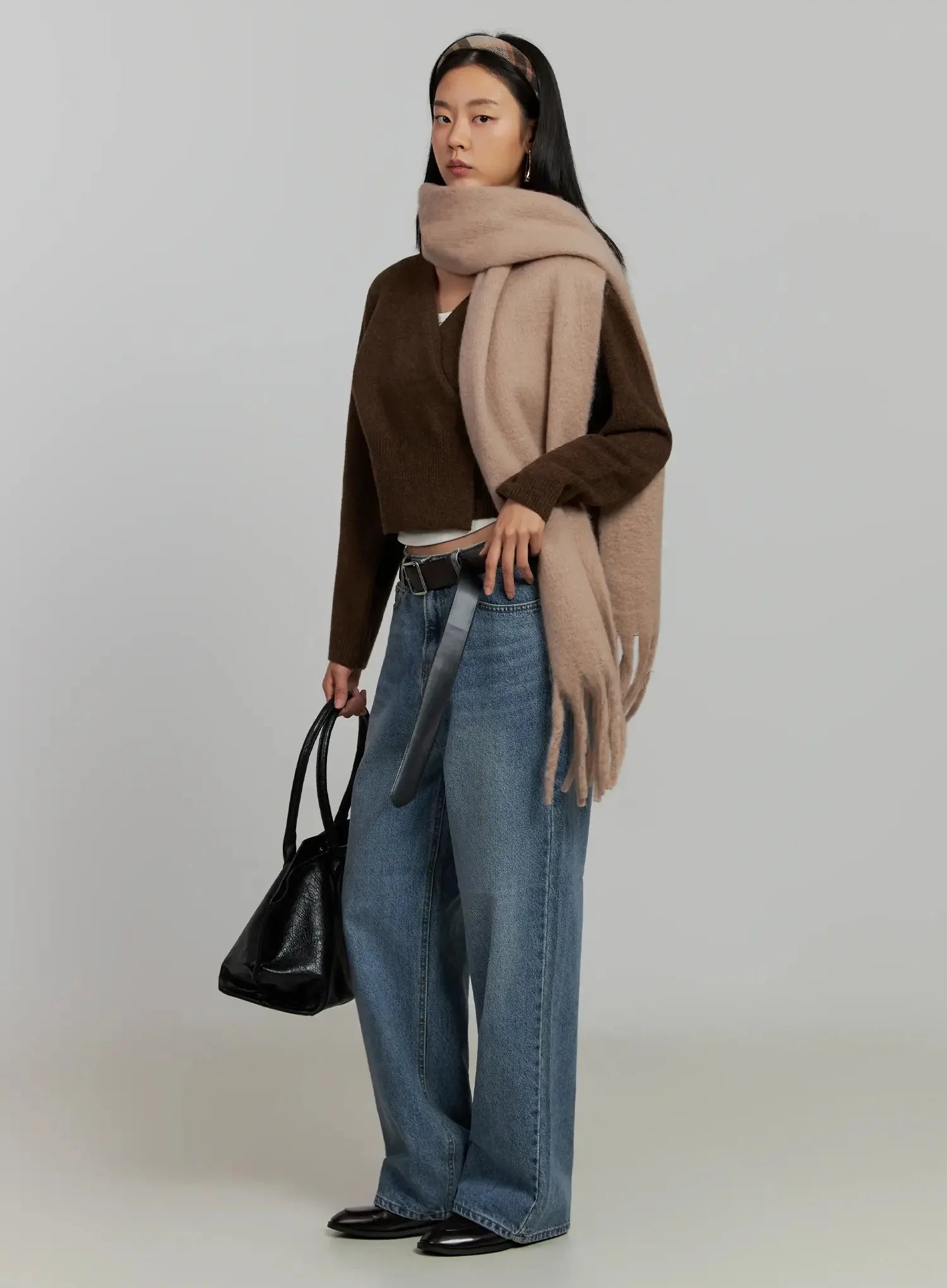 Model is wearing size S/M and the color Brown.