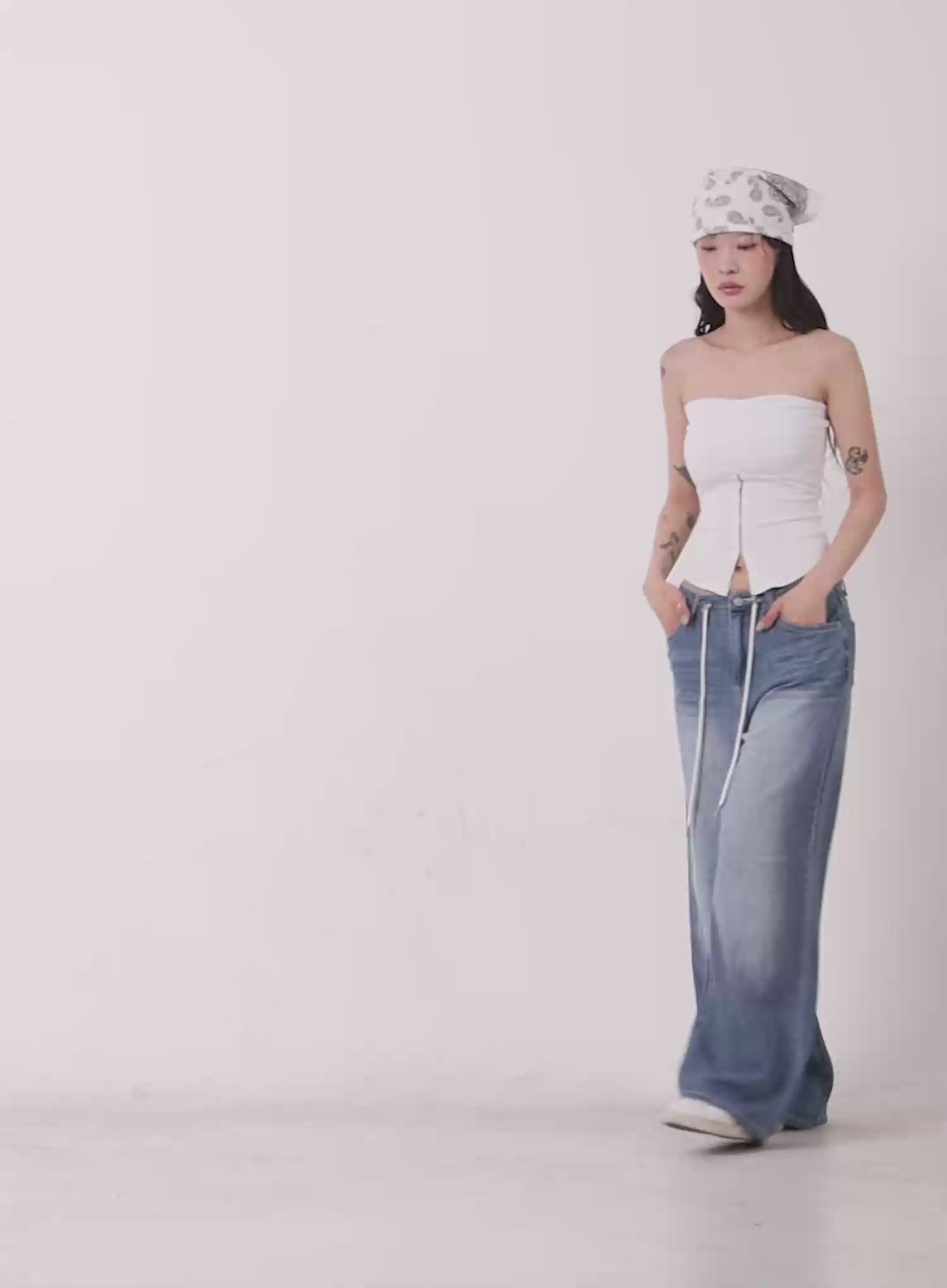 Tsuki Baggy Drawstring Denim Jeans IC503