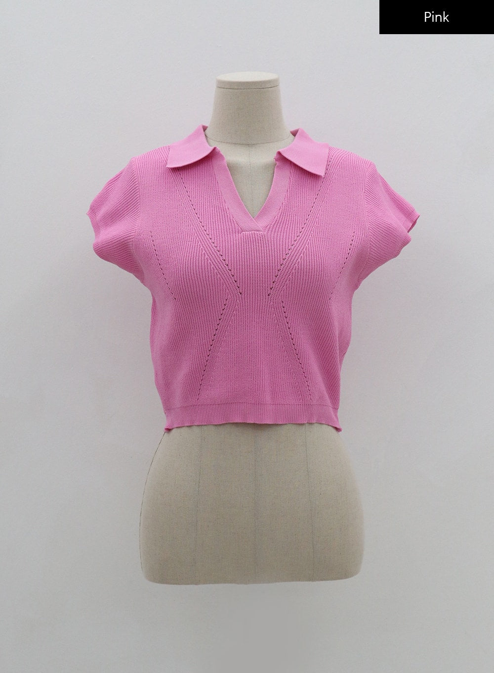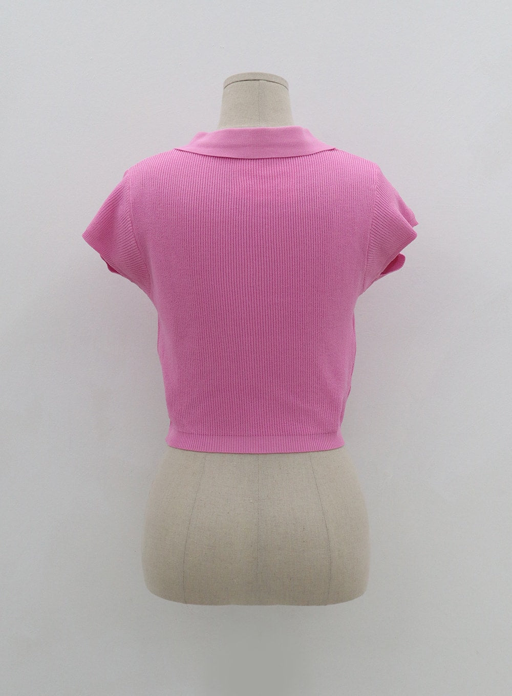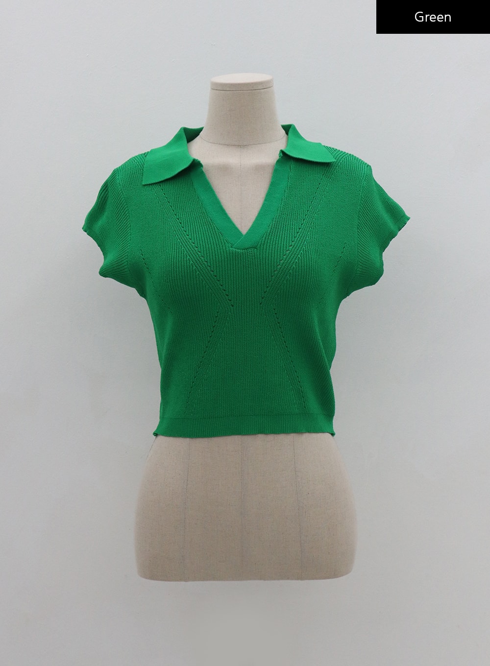 V-Neck Collar Crop Short Sleeve Tee BG09