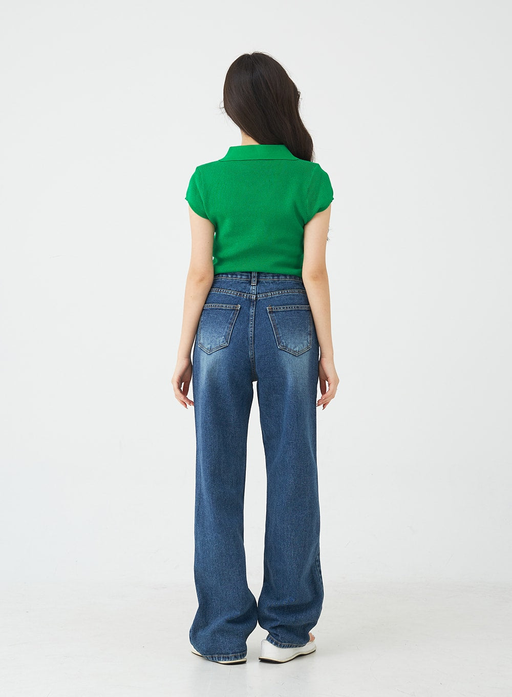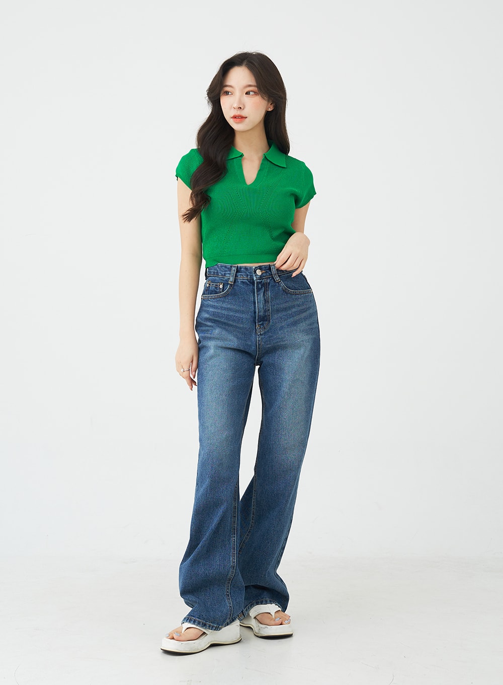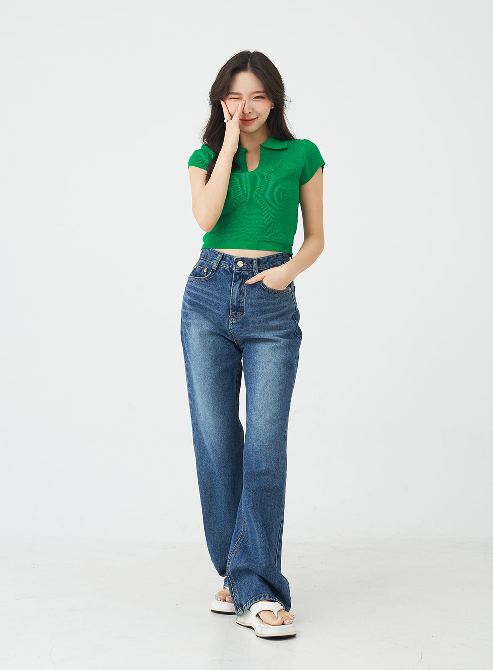 V-Neck Collar Crop Short Sleeve Tee BG09