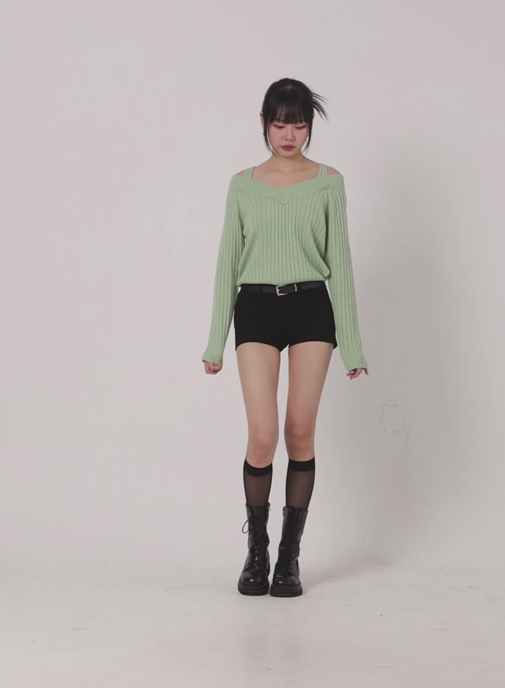 Model is wearing size S/M and the color Light green.
