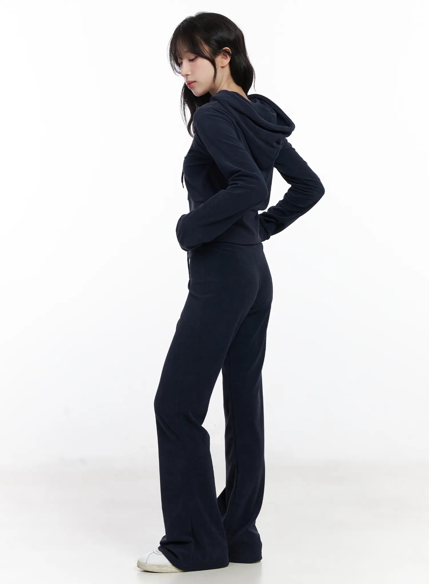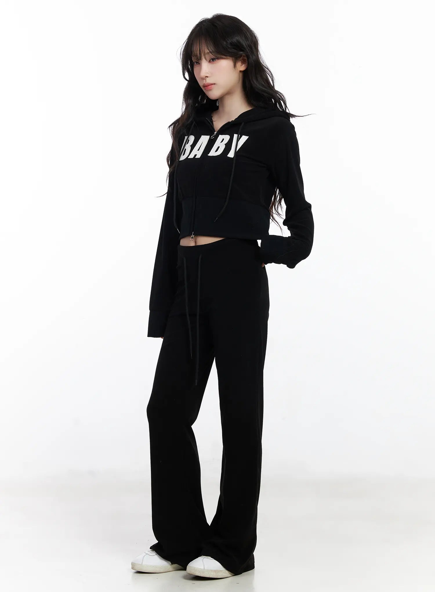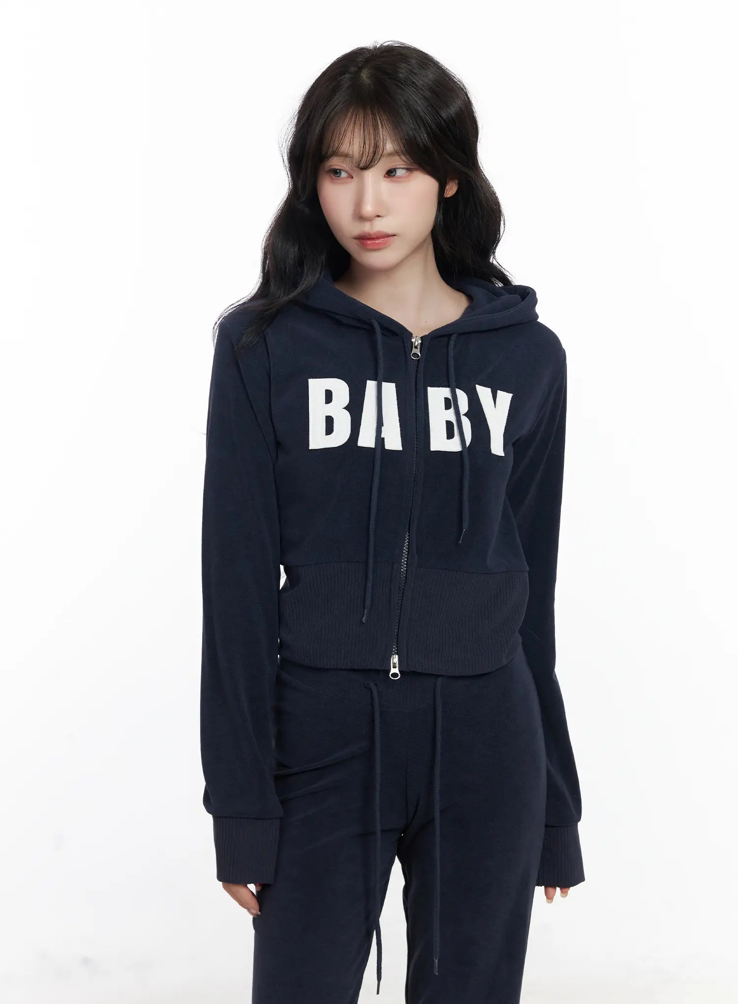 Velour Cropped Long Sleeve Graphic Hoodie CJ526