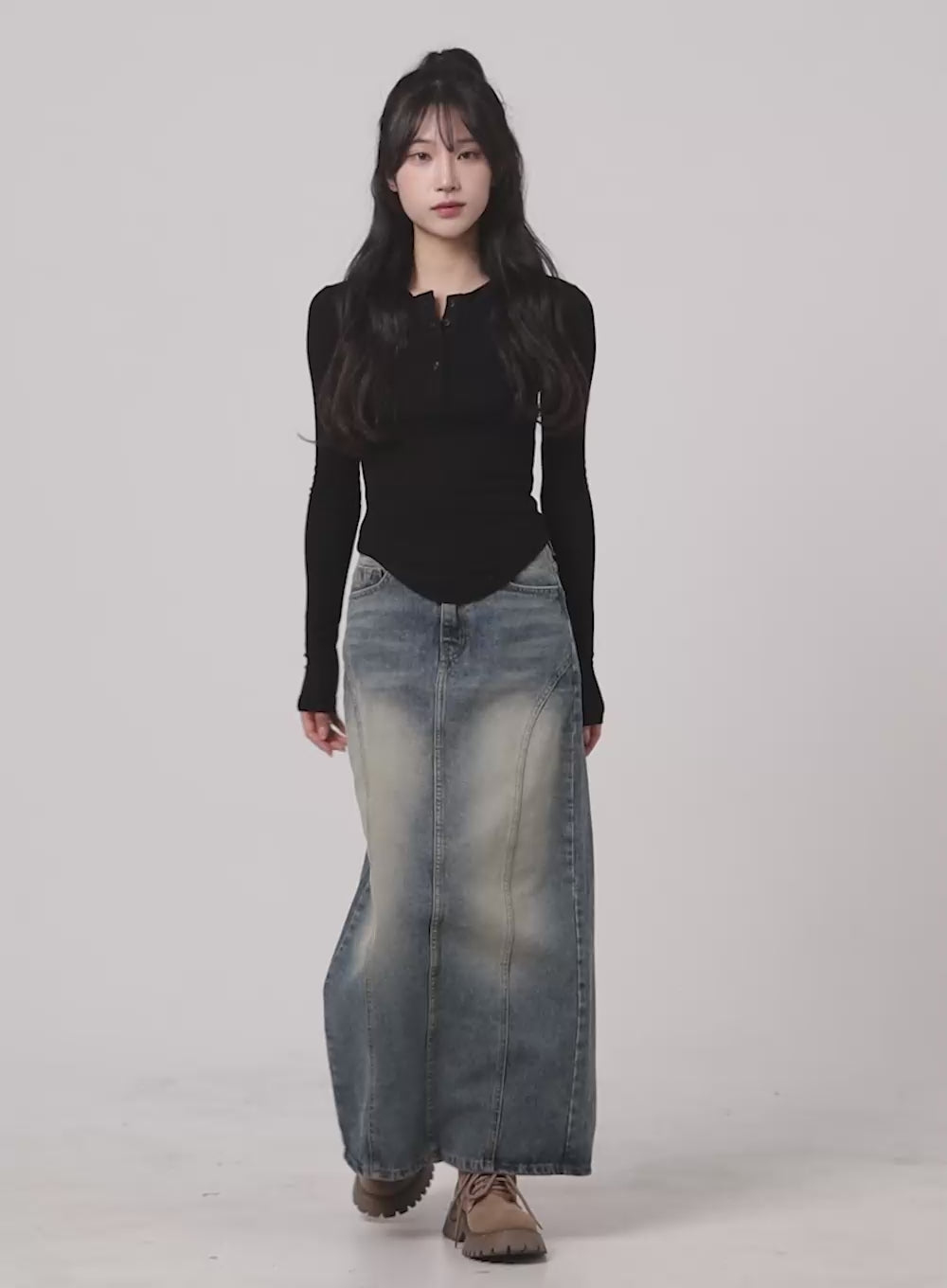 Vintage Washed Denim Maxi Skirt CA403