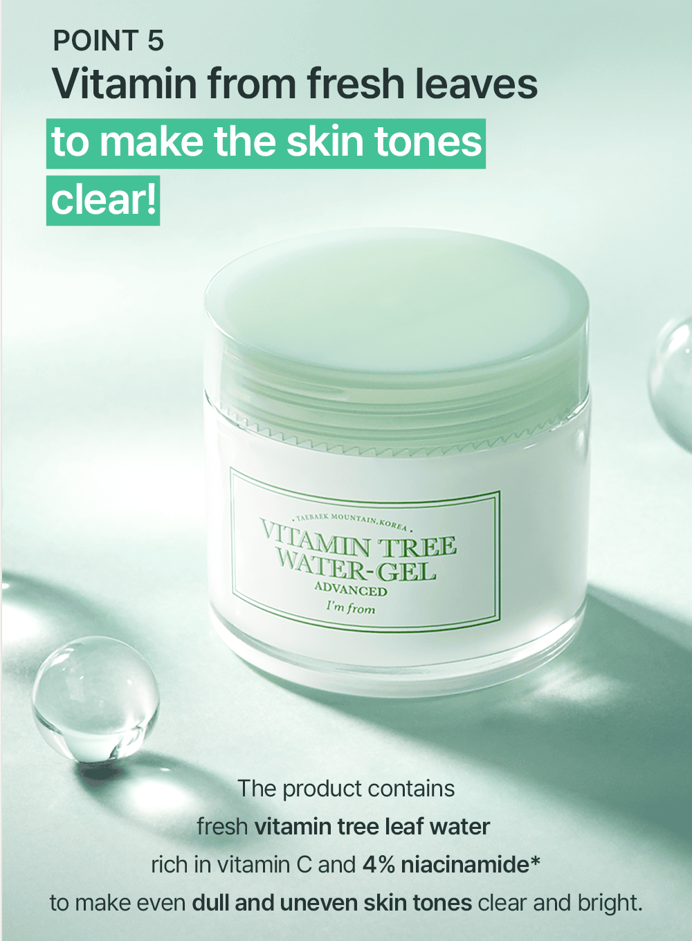 - The cooling effect of vitamin tree water-gel helps to clear and even