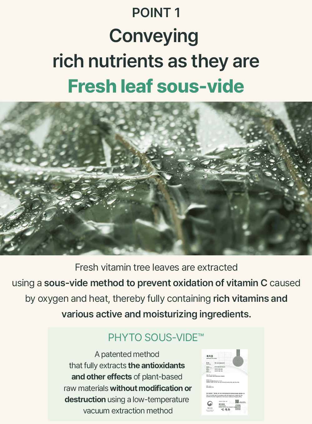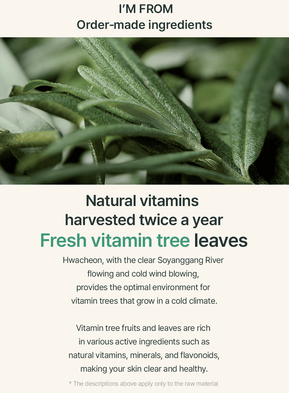 - contains Vitamin Tree Leaf Water extracted from infused vitamin tree leaves