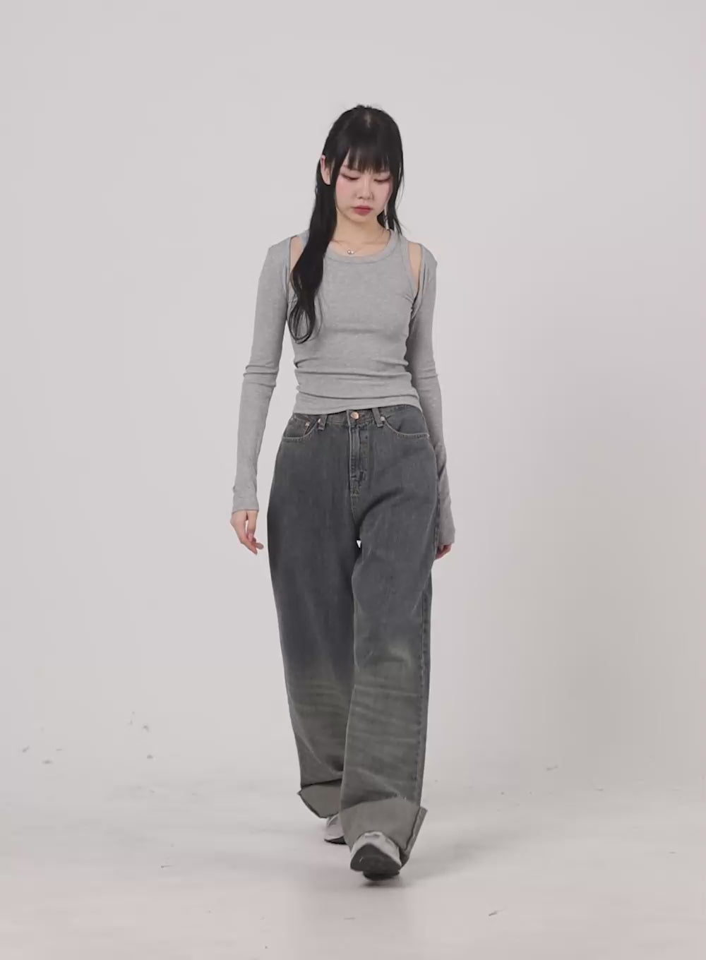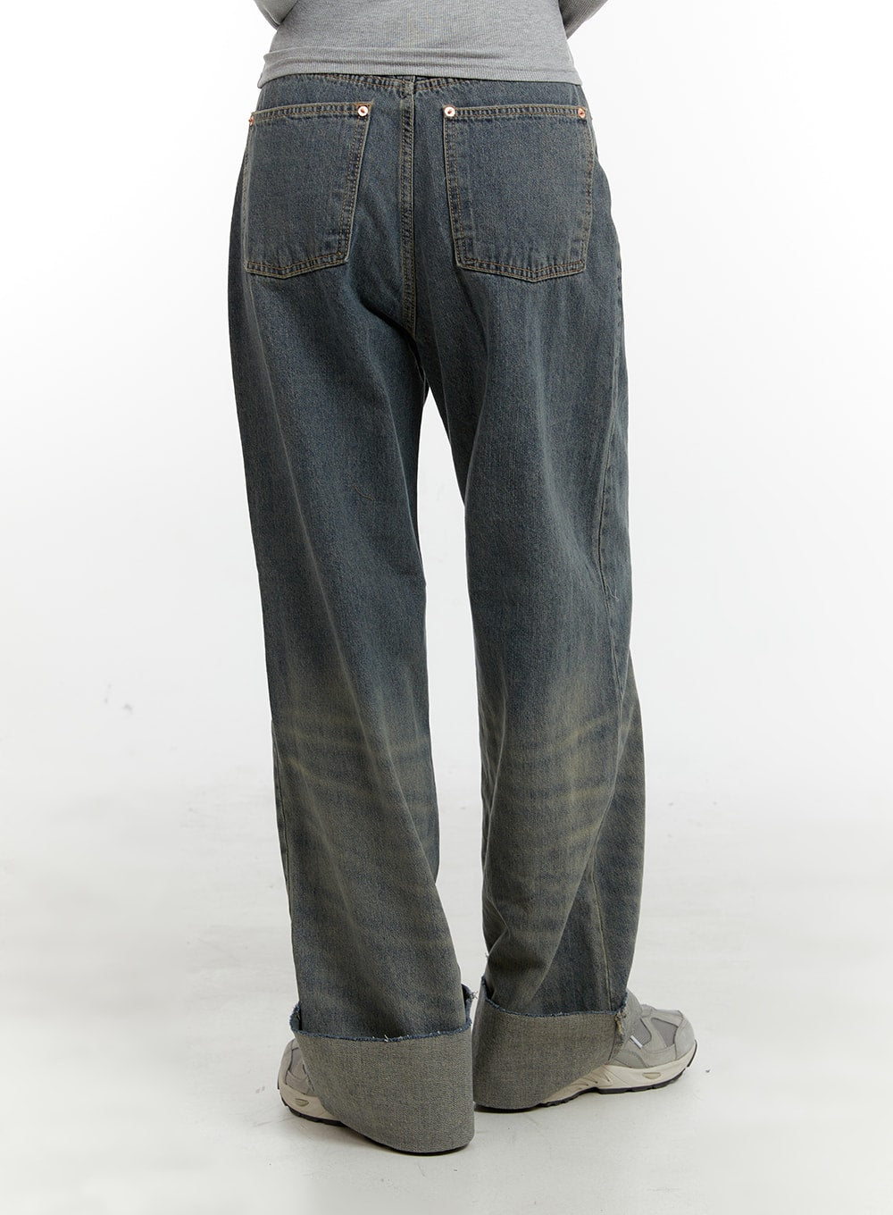 Washed Straight Leg Roll-Up Jeans CA401