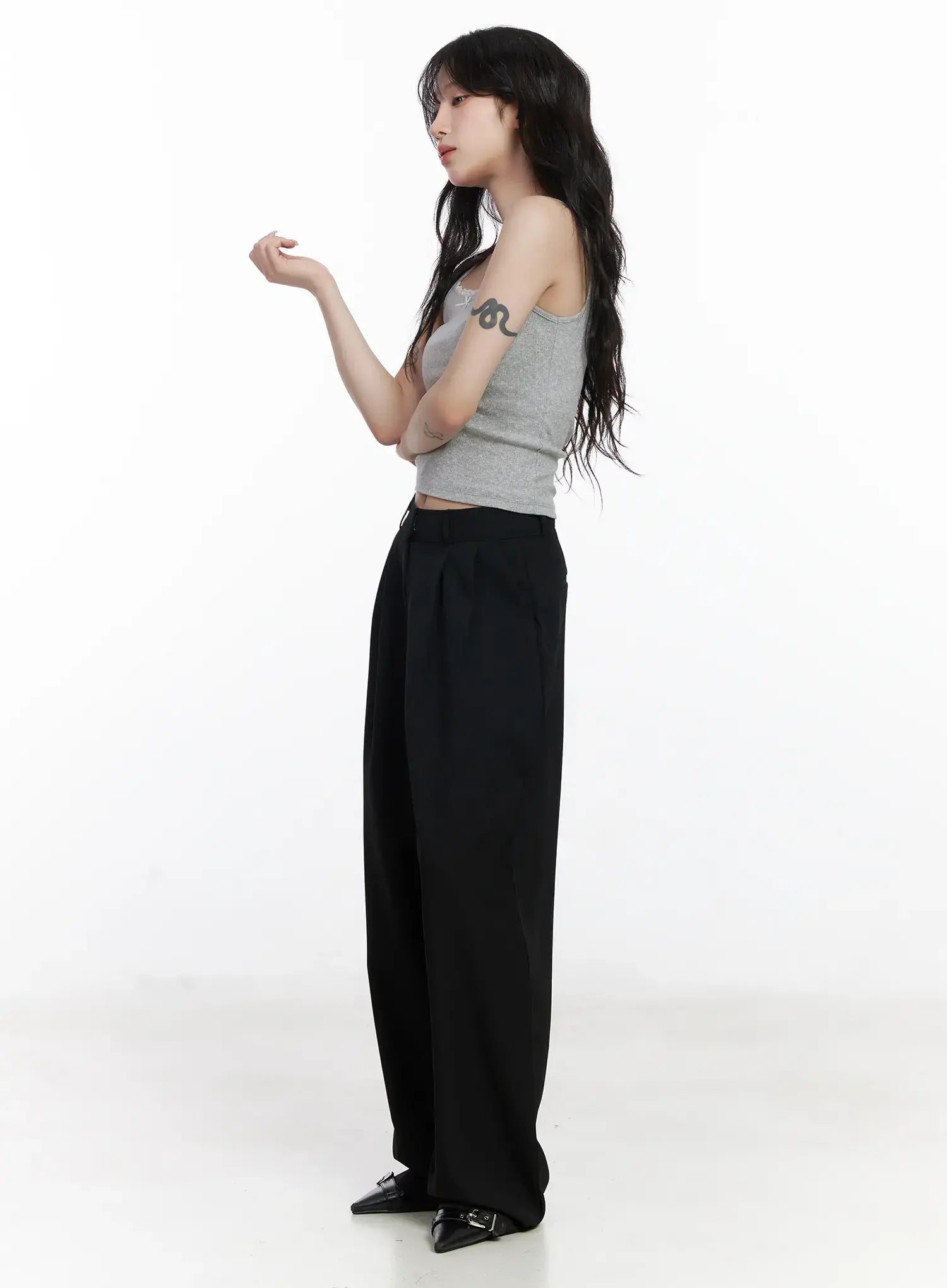Wide Leg Pin-Tuck Slacks CJ526