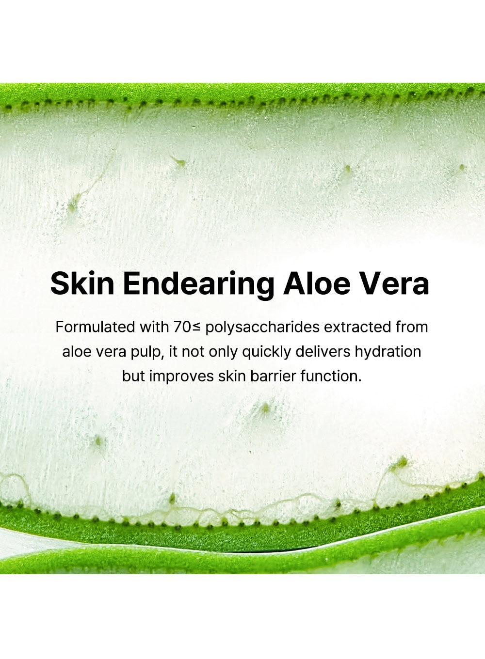 • Contains 70% Aloe Vera Polysaccharides that soothe skin irritation and strengthen the moisture barrier, helping to lock in hydration for long-lasting effects.
