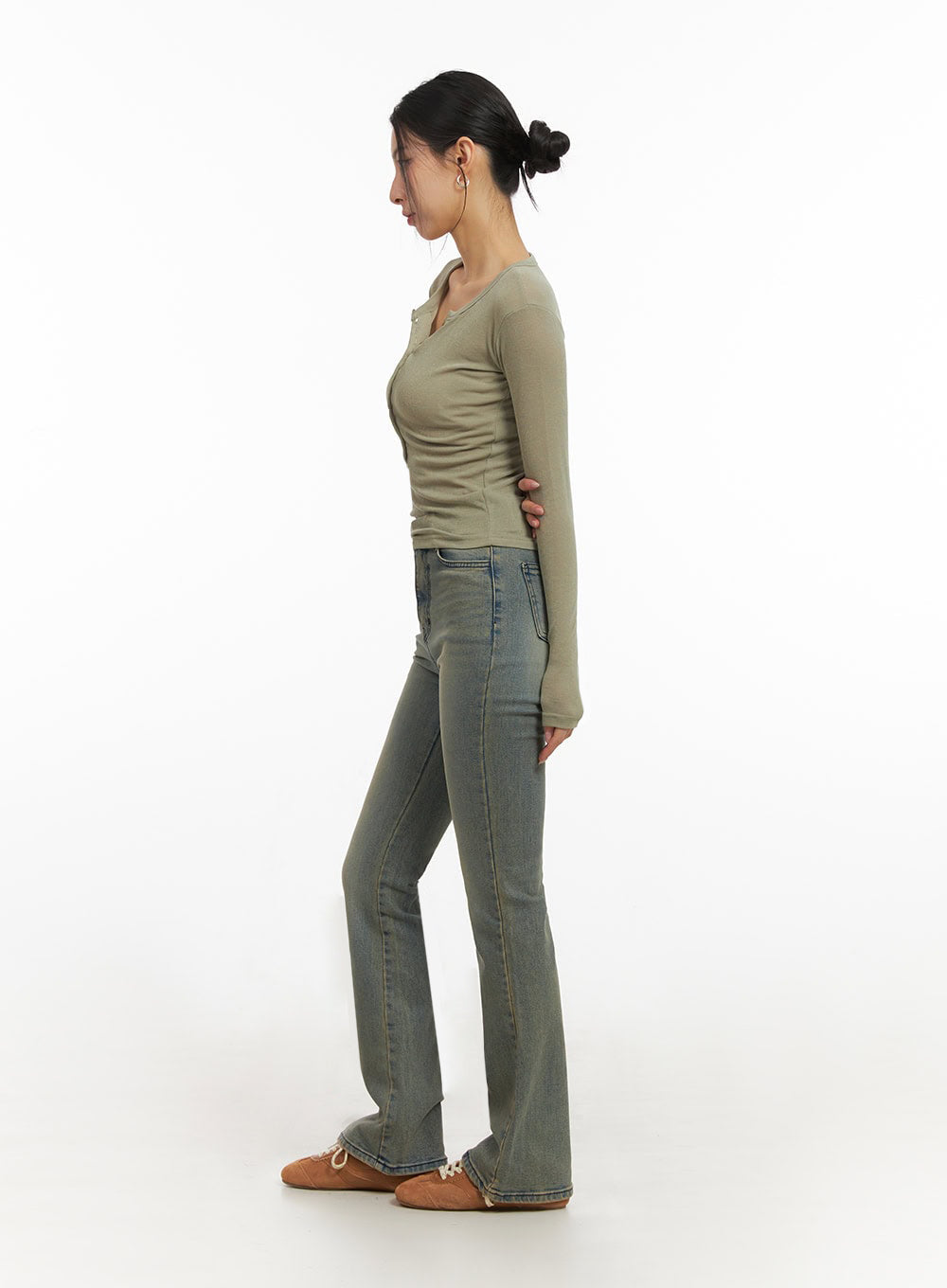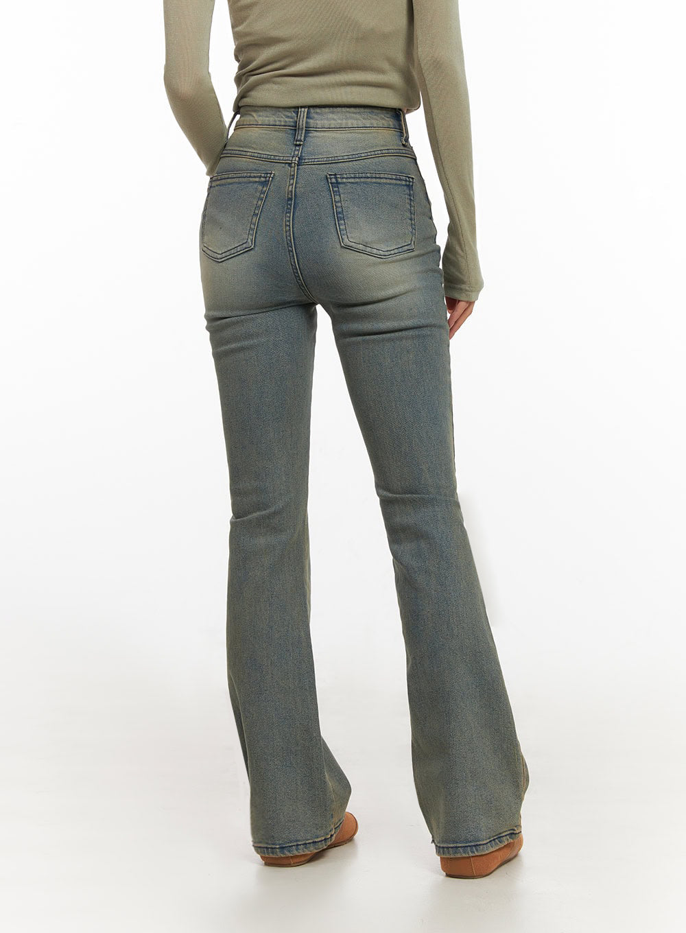 Cathy Washed Slim-Fit Flared Jeans IJ503