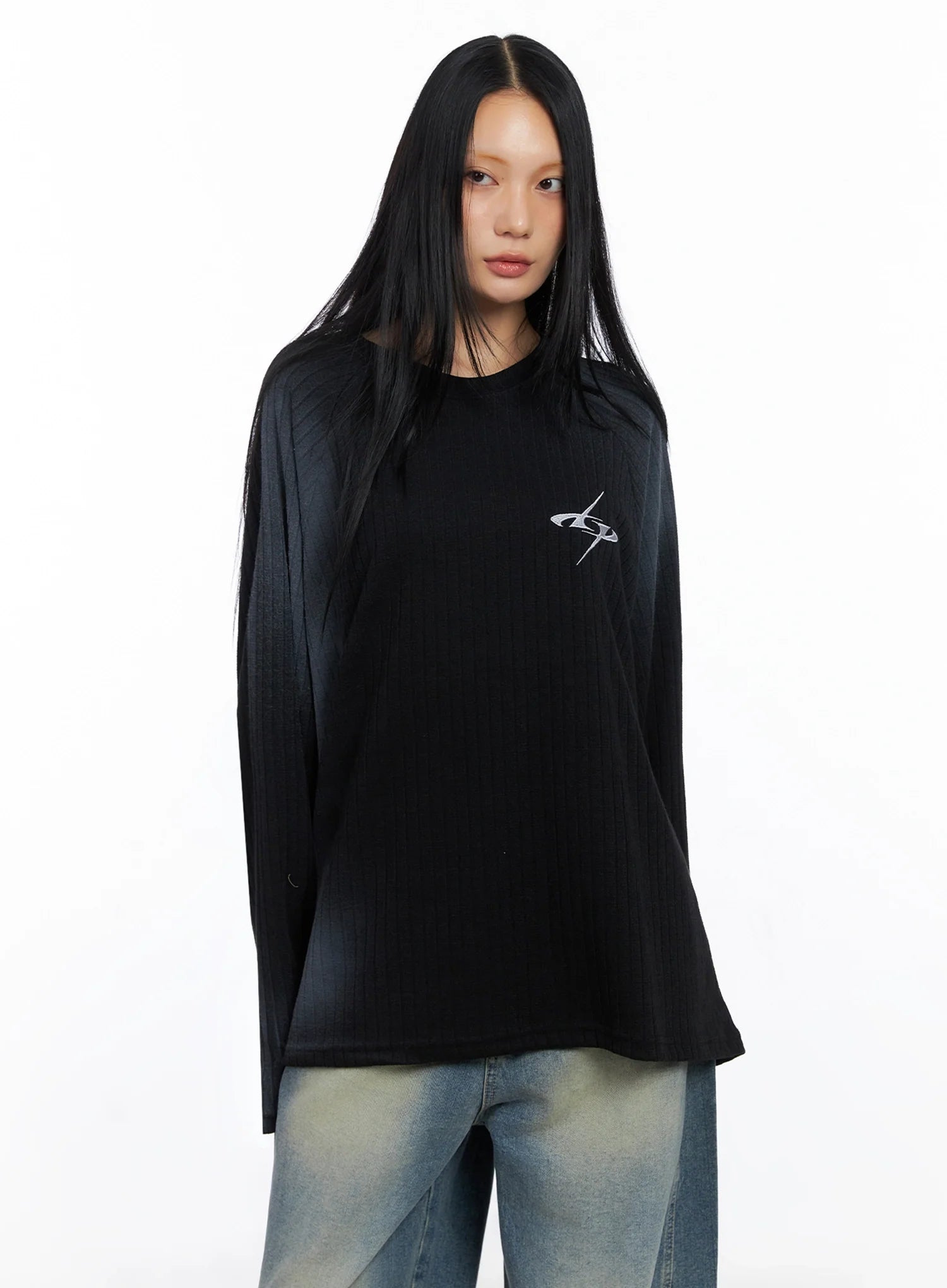 Oversized Gradient Ribbed Knit Top IO517