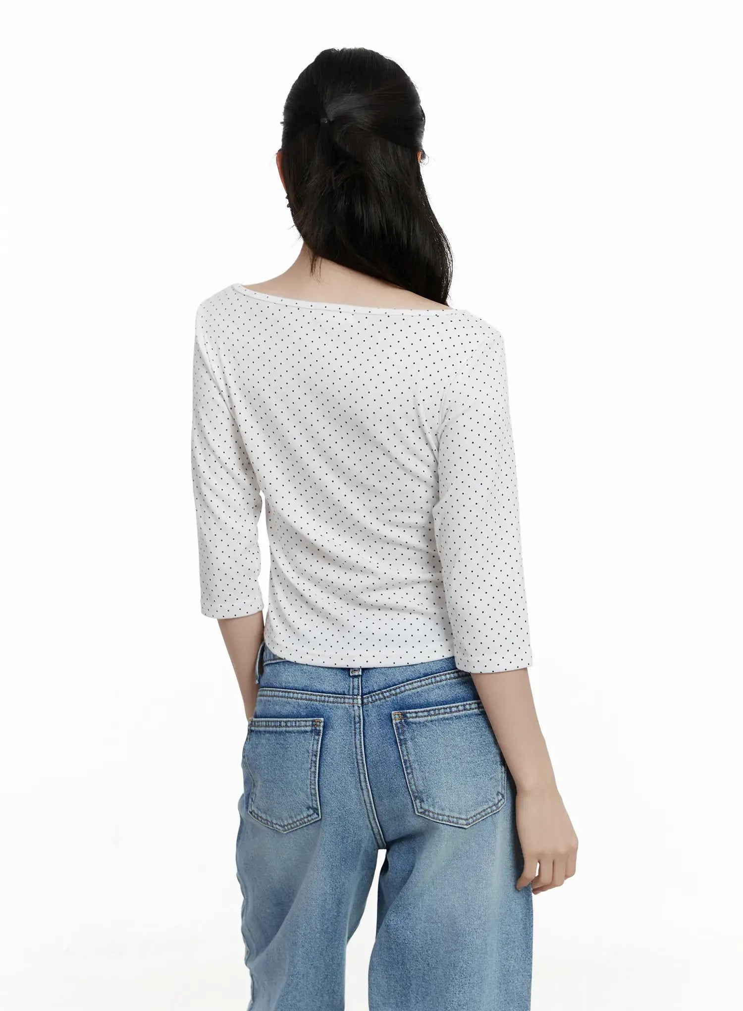 Polka Dot Boat Neck Top F502
