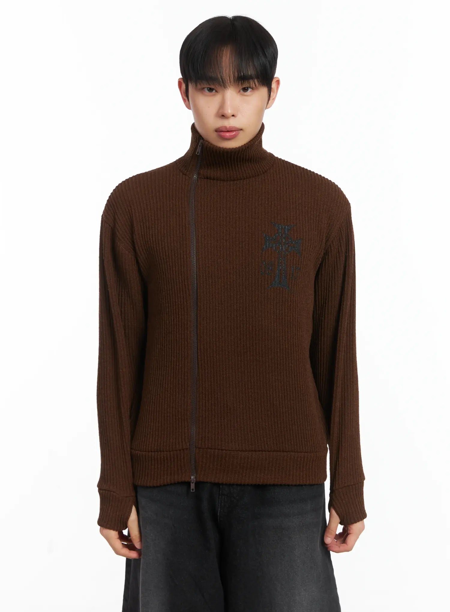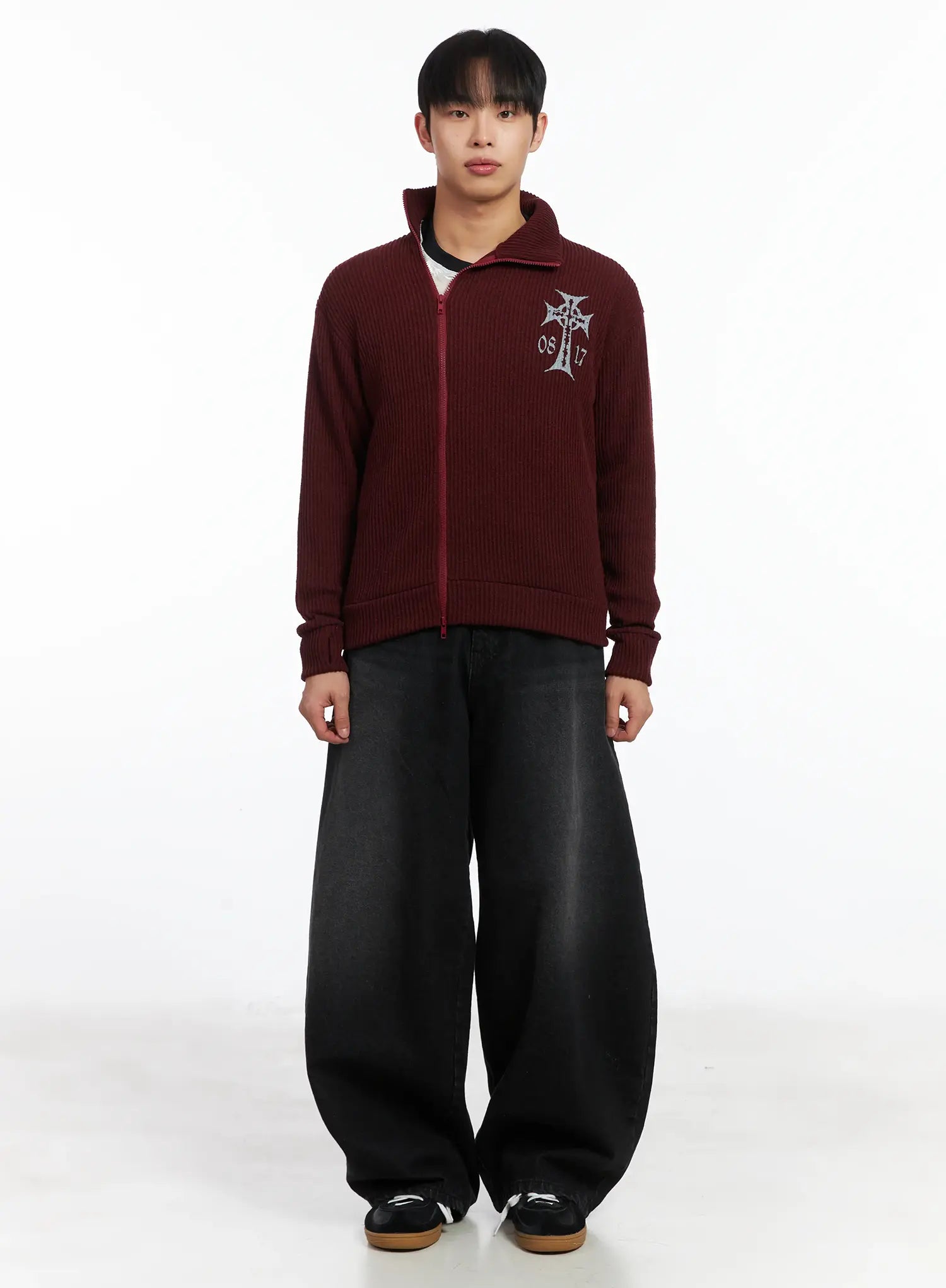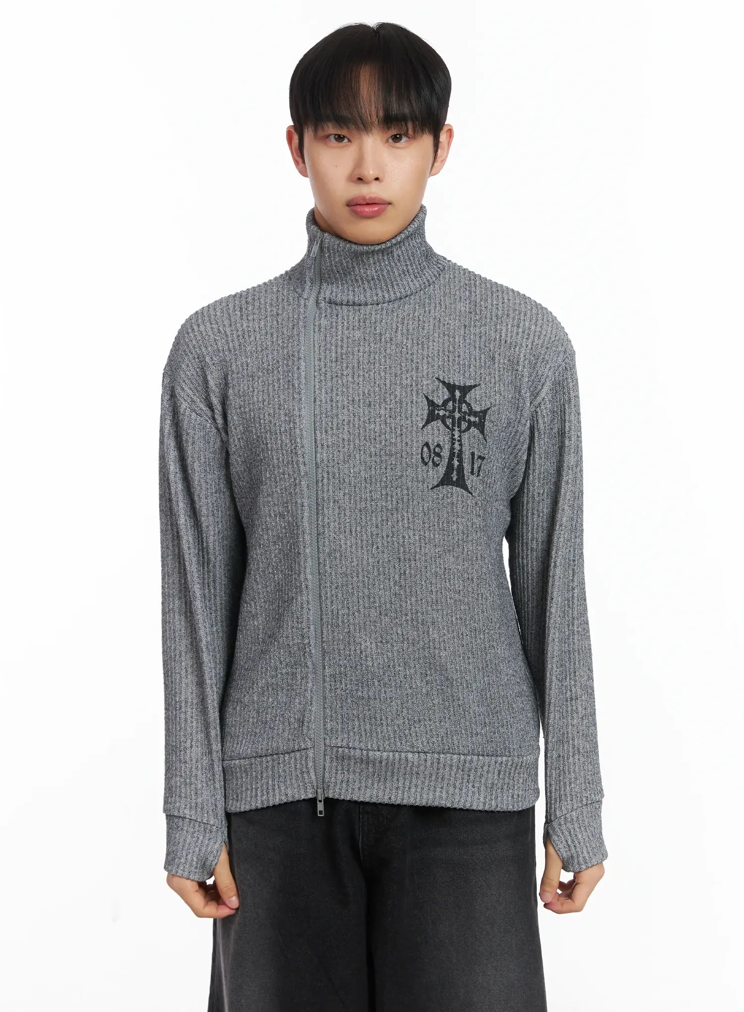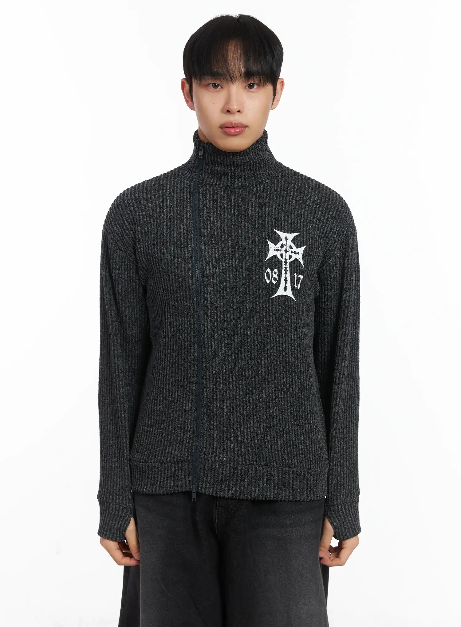 Cross Print High Neck Zip-Up Cardigan ID515