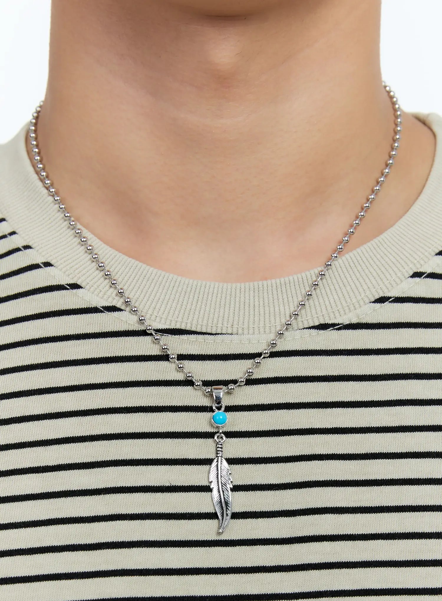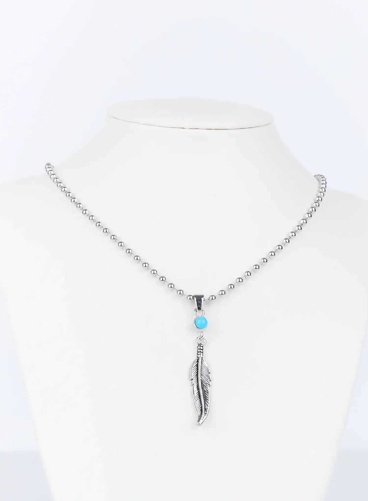 Men's Turquoise Feather Pendant Necklace IG519