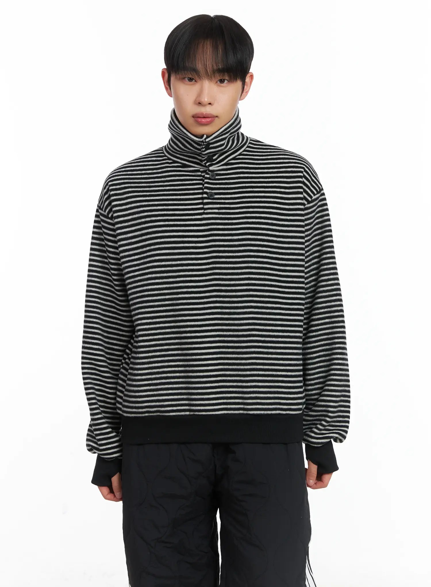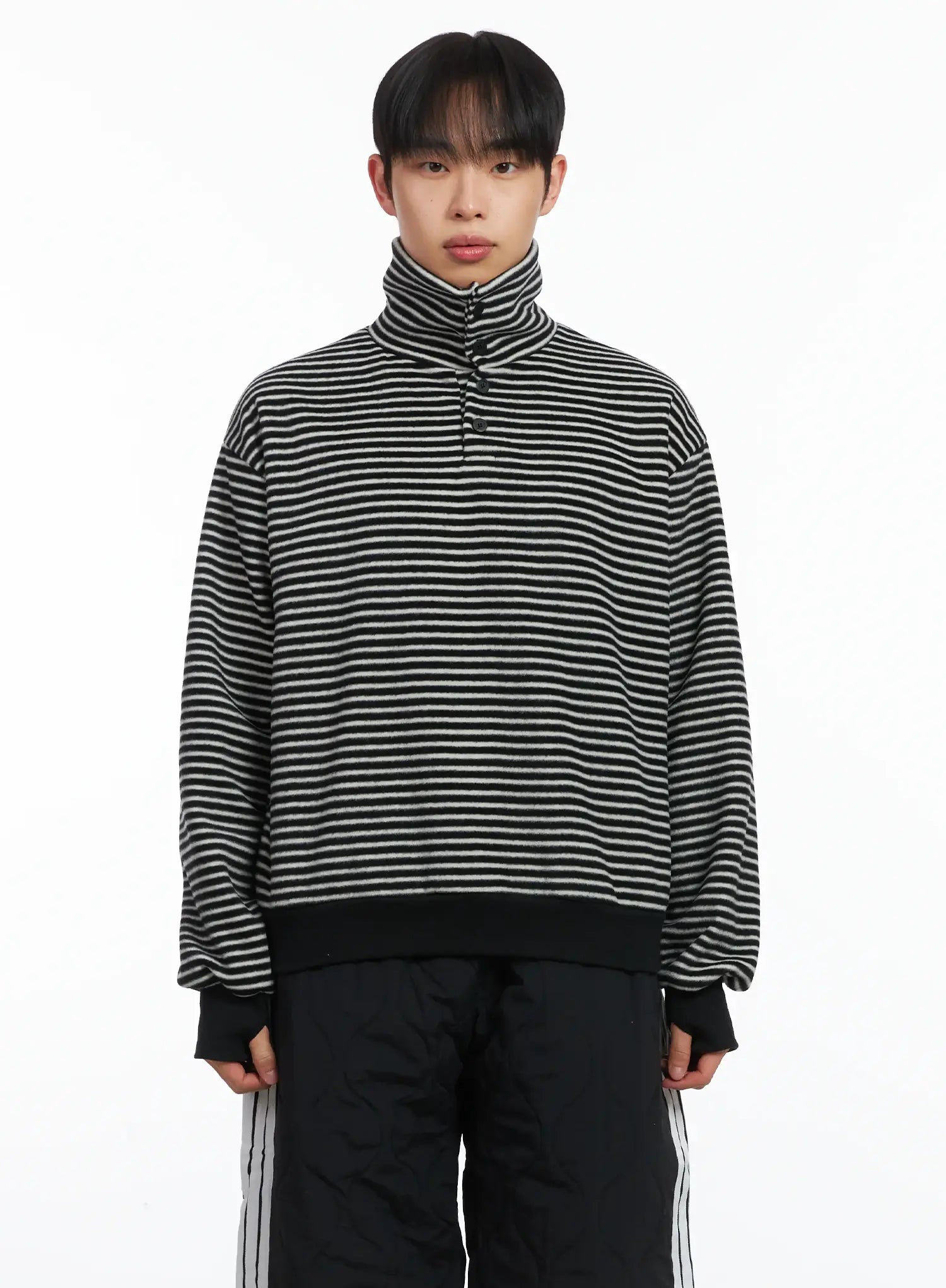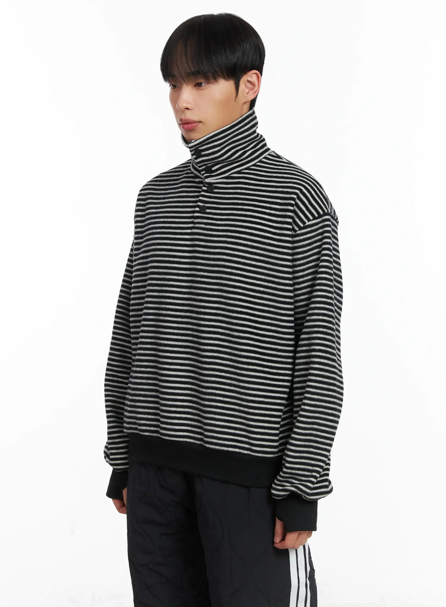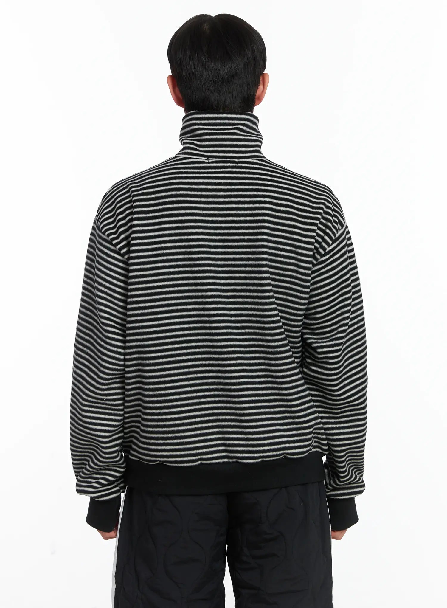 Striped High Neck Fleece Tee ID515