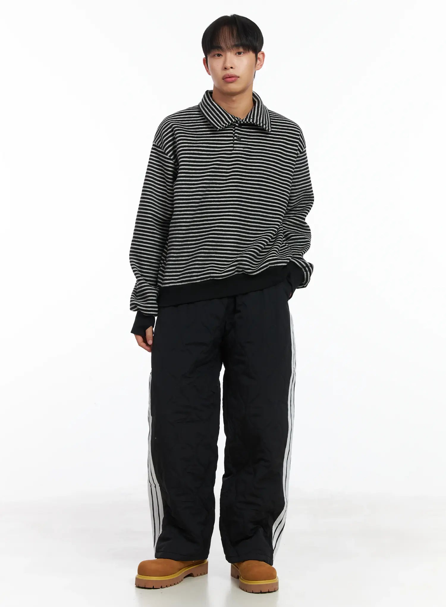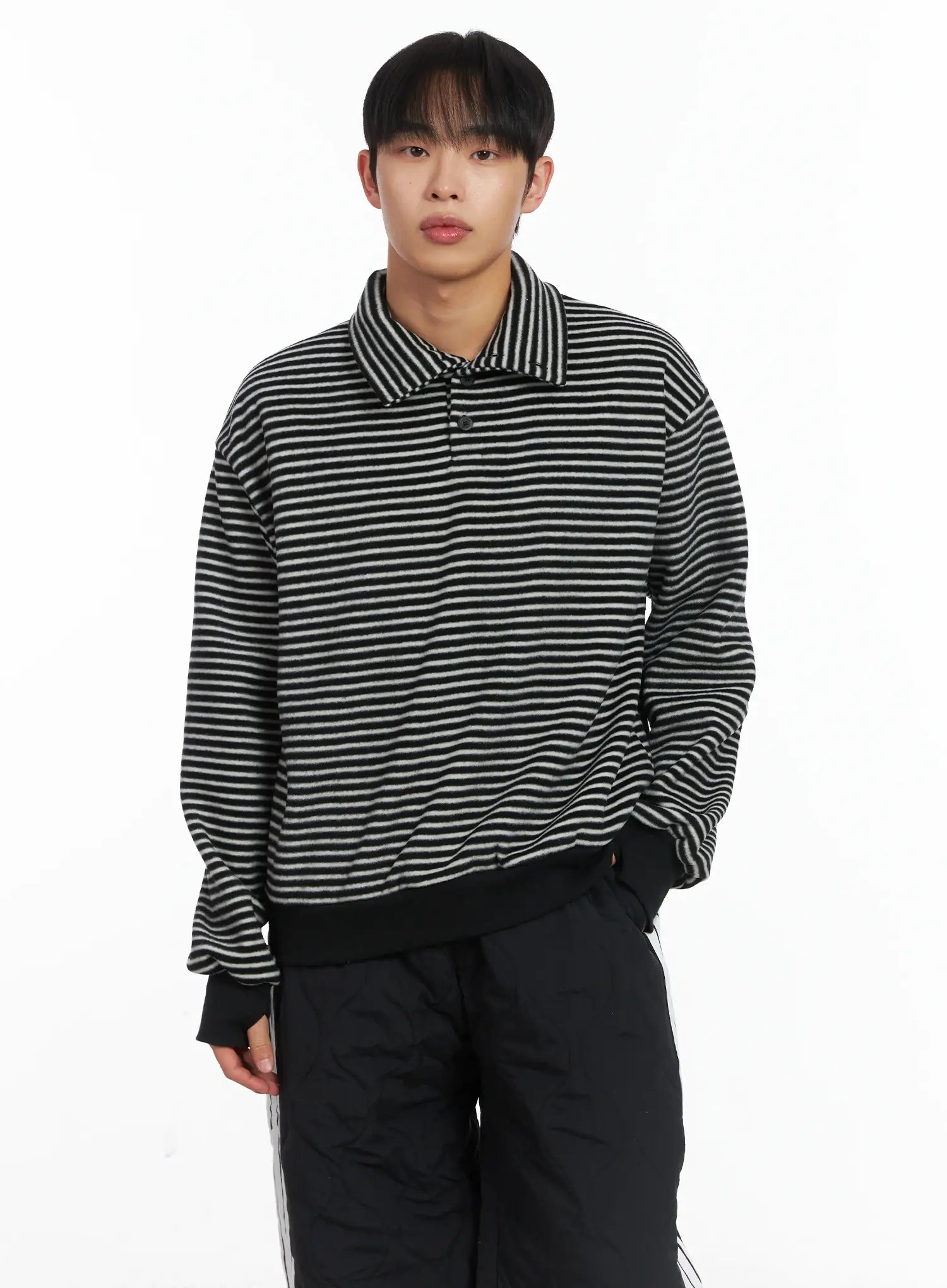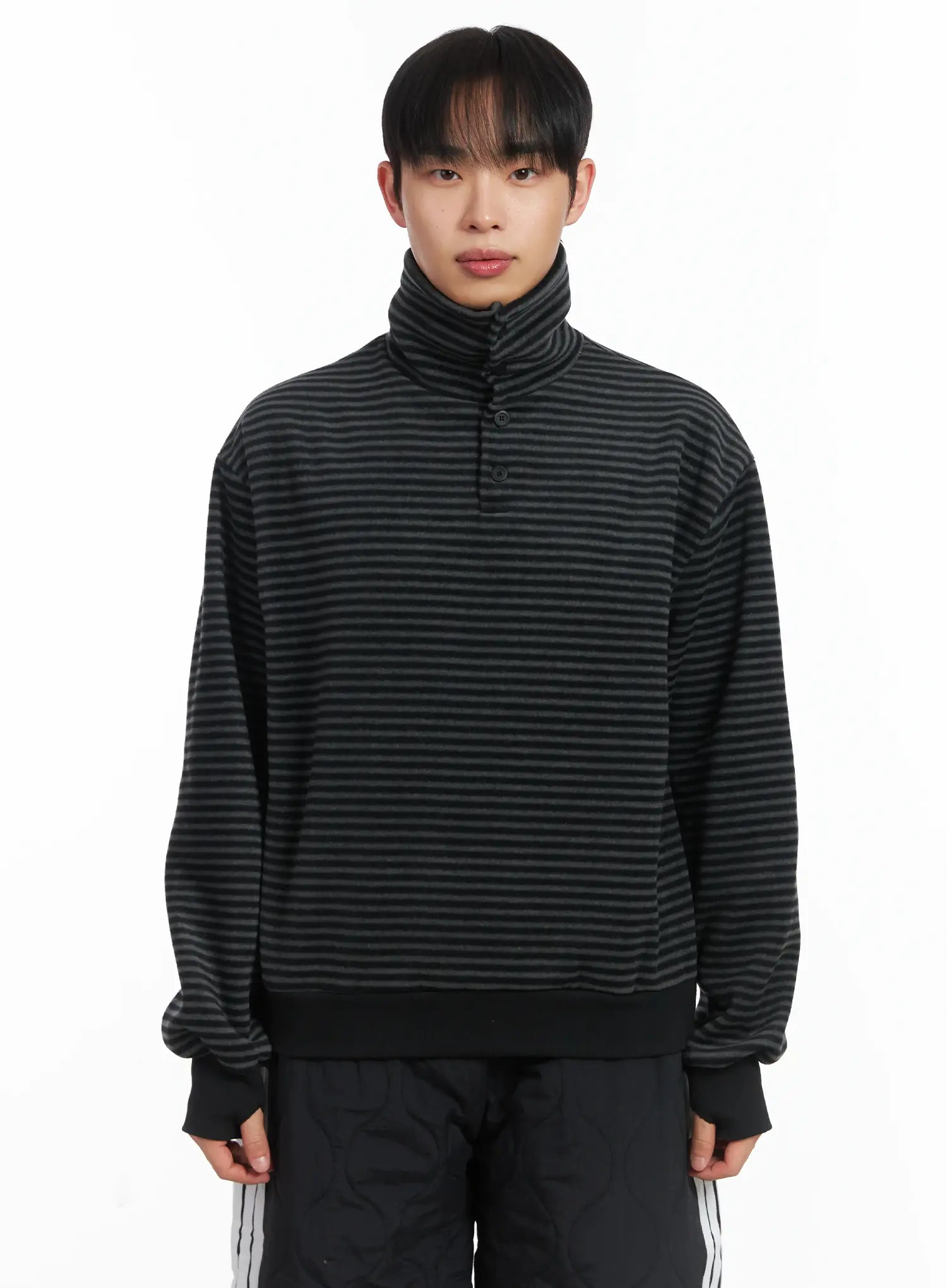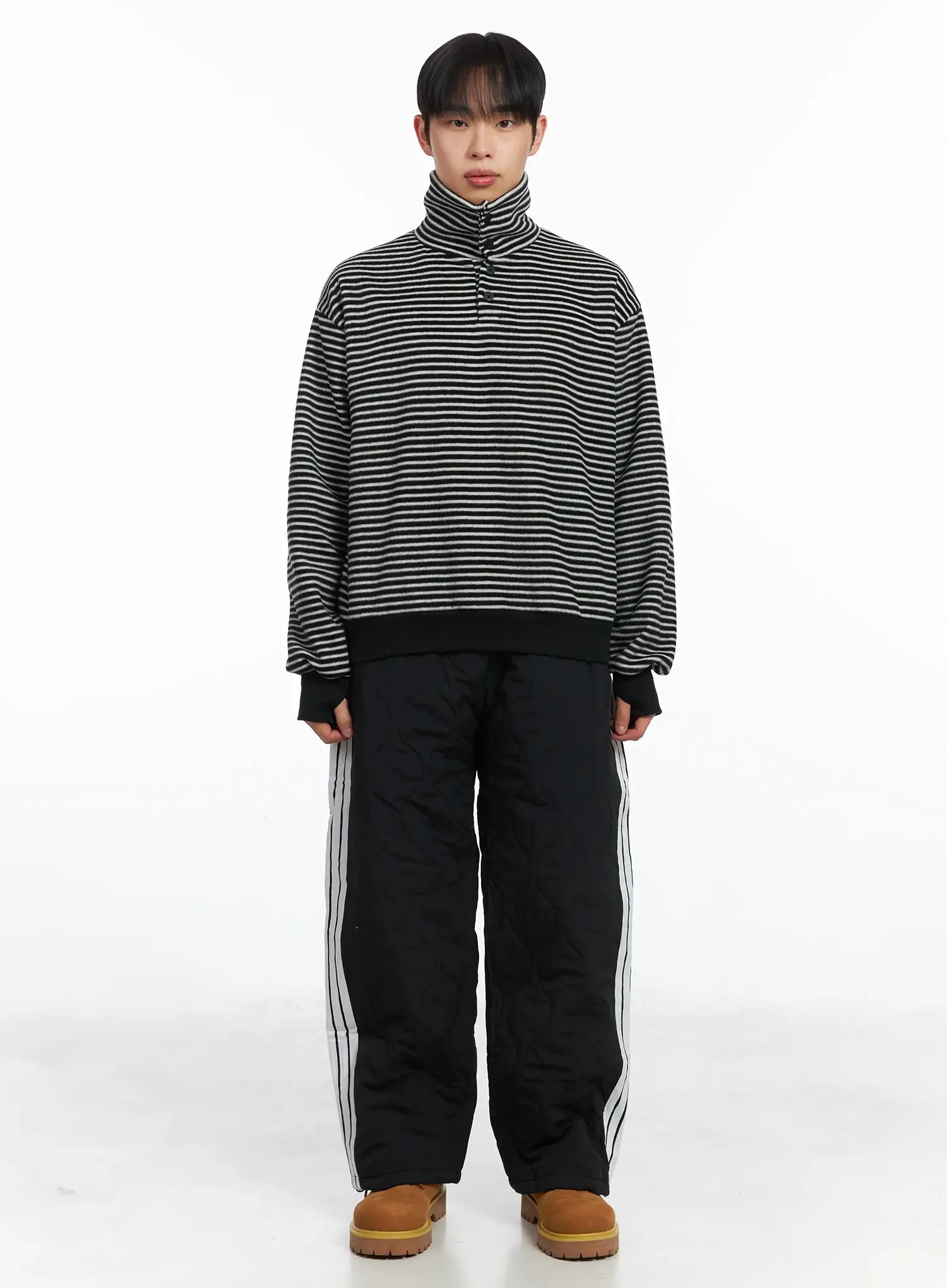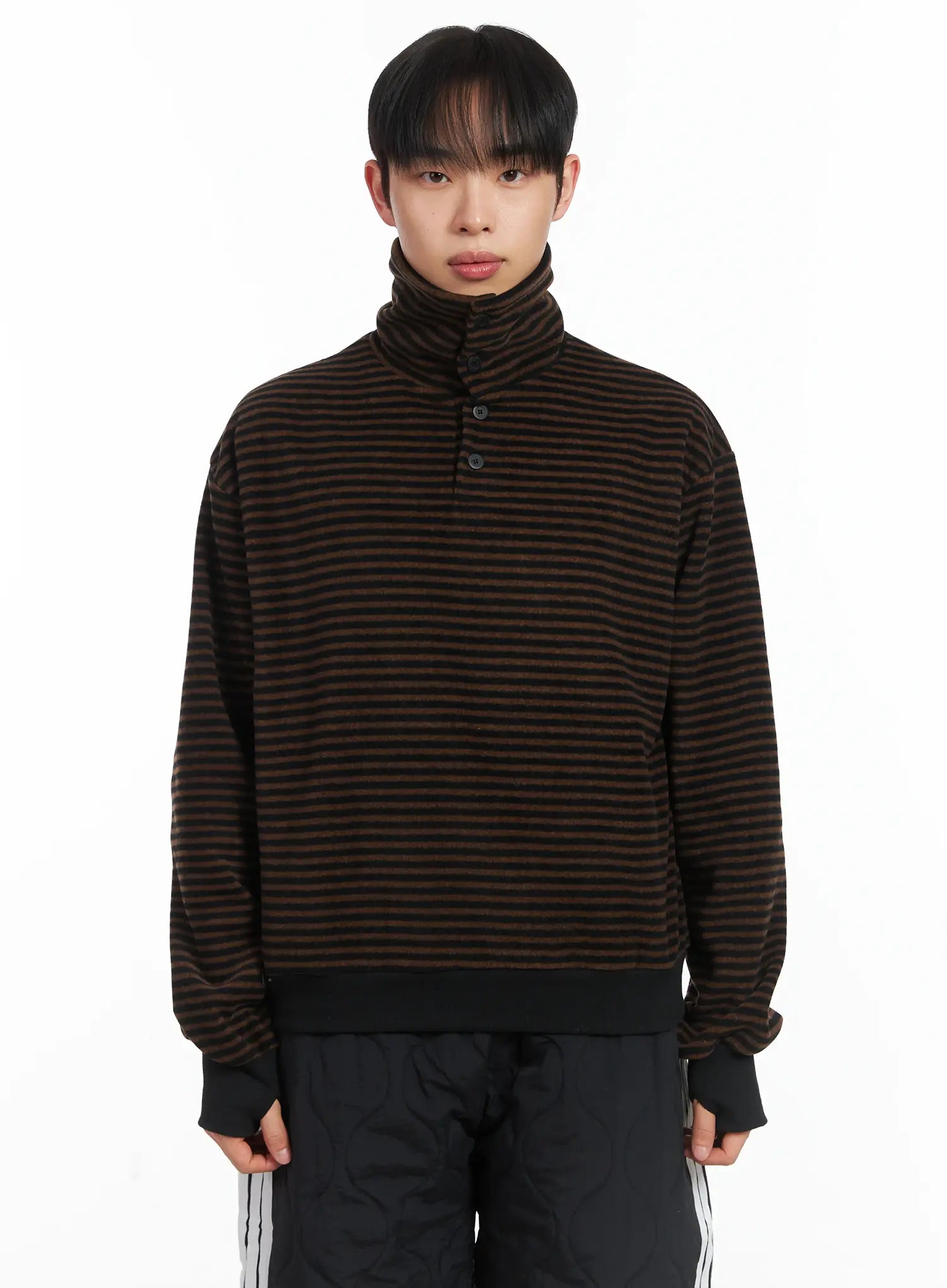 Striped High Neck Fleece Tee ID515