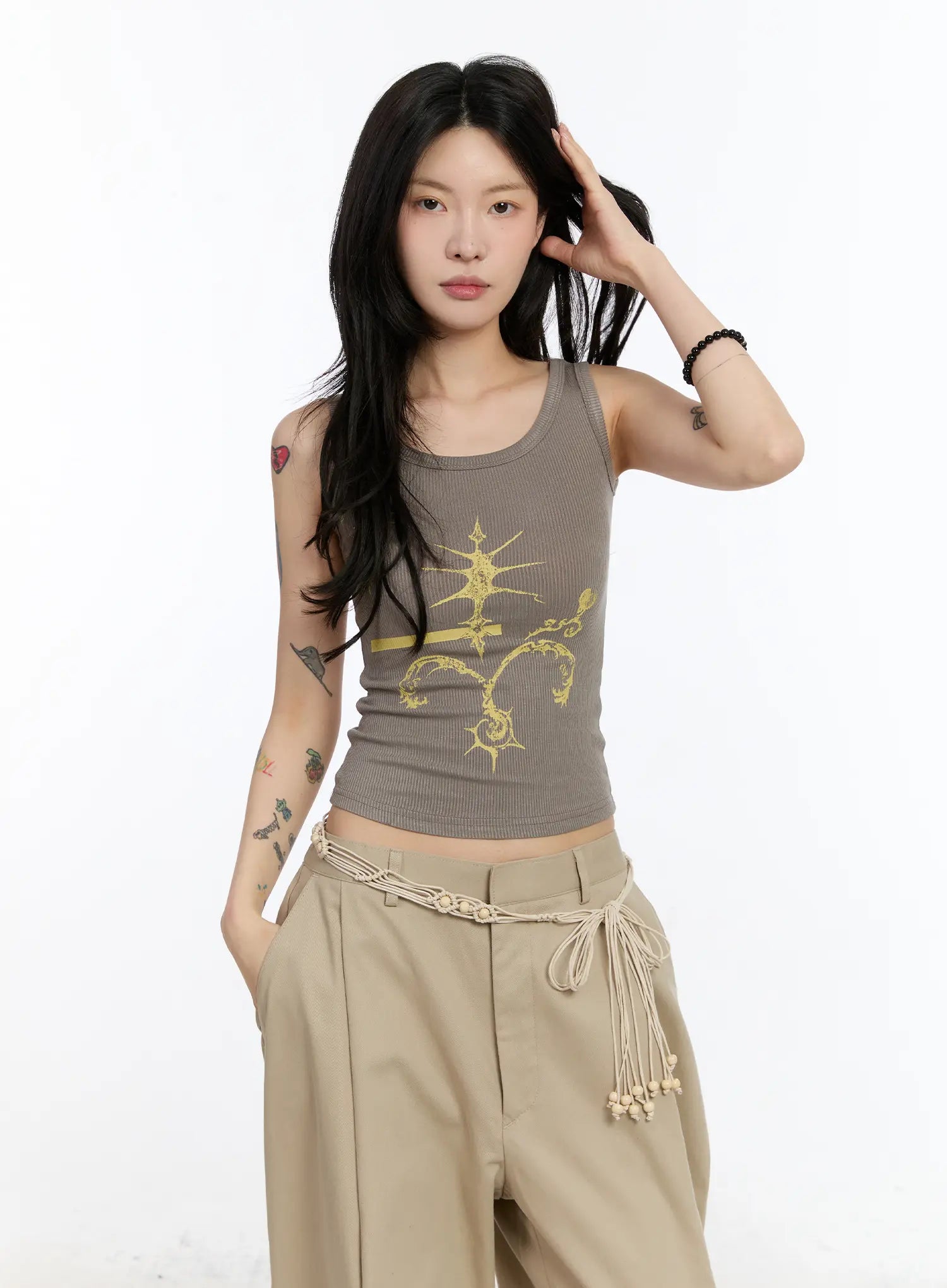 Gothic Print Ribbed Tank CA506