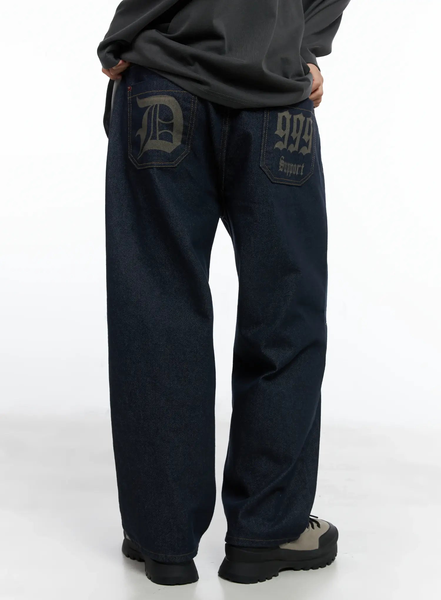 Men's Graphic Pocket Jeans (Dark Blue) IN518