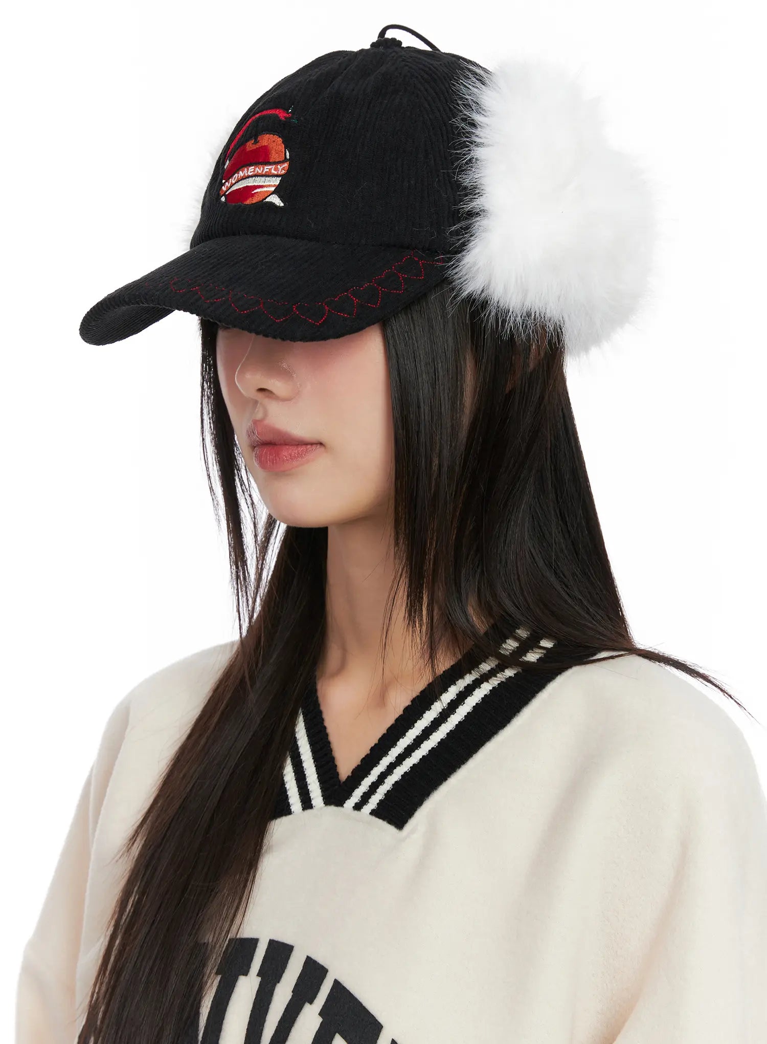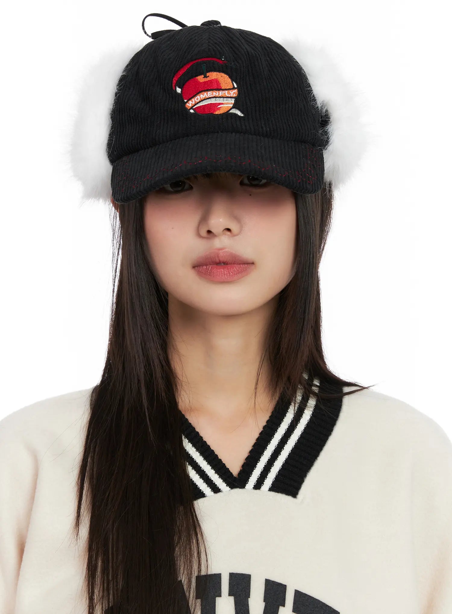 Corduroy Fuzzy Earflap Baseball Cap CN521
