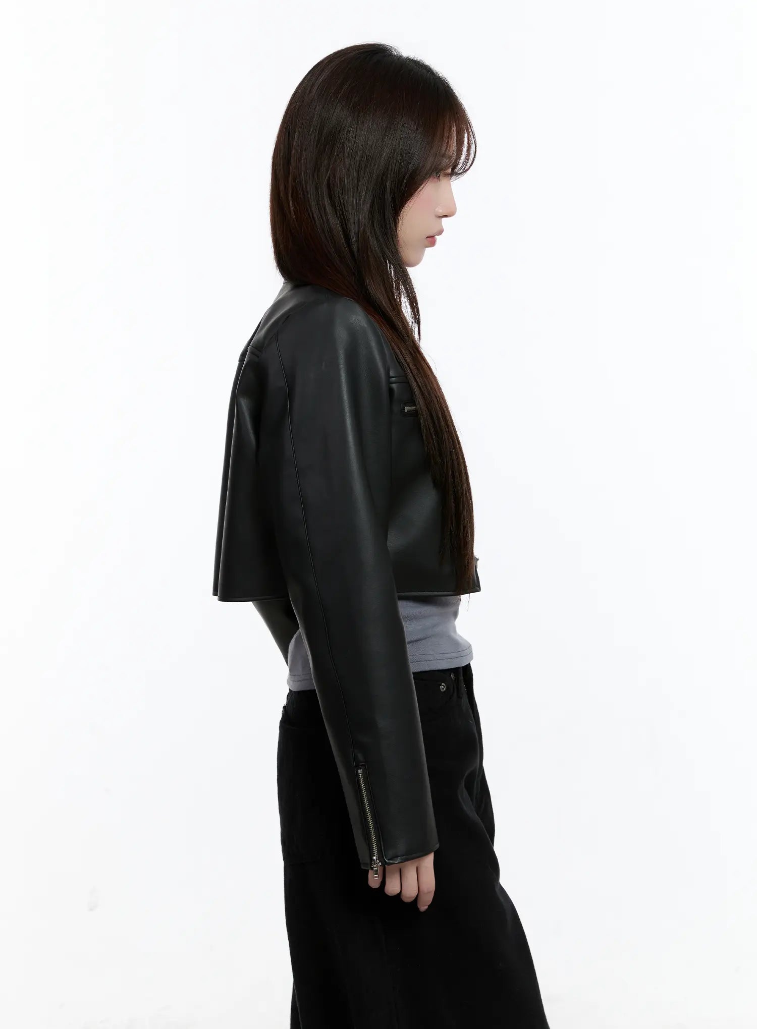 Cropped Faux Leather Rider Jacket CN525